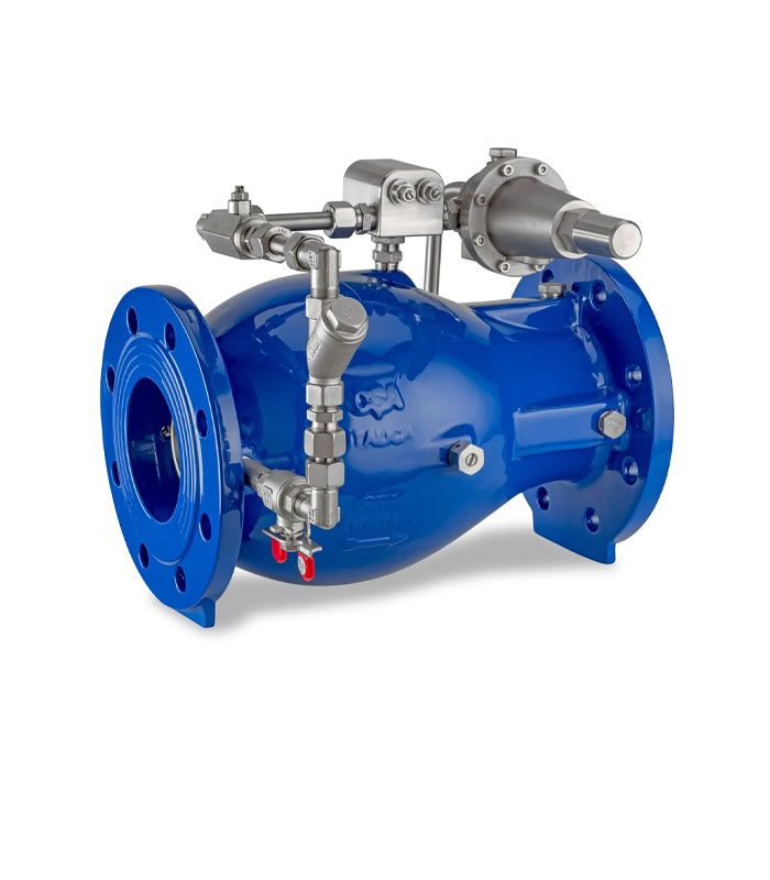 Mod Italica 310 is an axial flow hydraulically operated automatic control valve that reduces and stabilizes the downstream pressure to a constant value, regardless of variation in demands and upstream pressure conditions. Normally equipped with low flow stability and cavitation reduction cage, thanks to the exclusive axial flow patter the valve is designed to reduce head loss, noise and cavitation damage.
