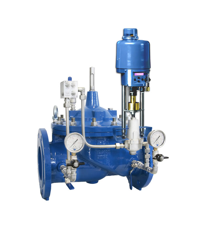 The CSA model XLC 310/410-M is a globe pattern hydraulically operated automatic control valve that reduces and stabilizes the downstream pressure to a constant value, regardless of variation in demands and upstream pressure conditions. Equipped with CSA AMS motor the valves will allow for changes in set point thanks to an input signal.